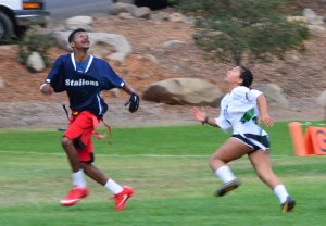 Claire playing tough defense against a Santa Clarita Valley International receiver.