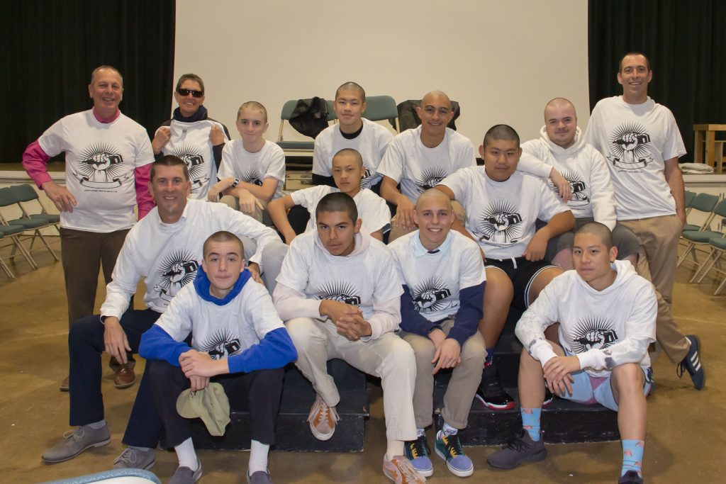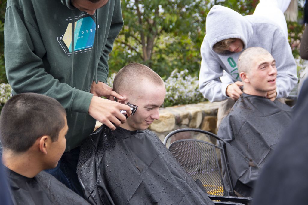 Students Ethan Chen, Thomas Christopher, Justin Huang, Brody Moller, Adam Pepper-Macias, Mark Pindur, Andrew Thacher, Sebastian Wayman-Dalo, Logan Wallace, and Gabe Weisiger all shaved their heads to raise money for and awareness of Pediatric Cancer Research.