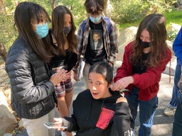 It was morning meeting on Wednesday at the OVS amphitheater when heads frantically turned and eyes focused hard to sneak a glimpse as the hair came off 12 inches at a time.