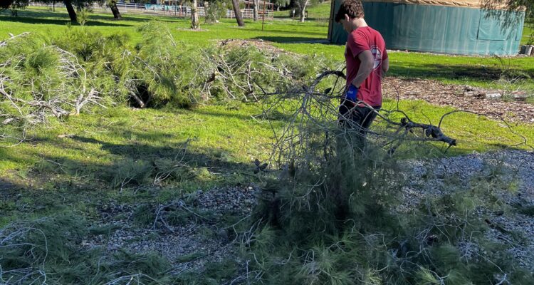 They tended to horses that had been evacuated from other ranches, cleaned up downed trees, and dug drains for the rainwater.