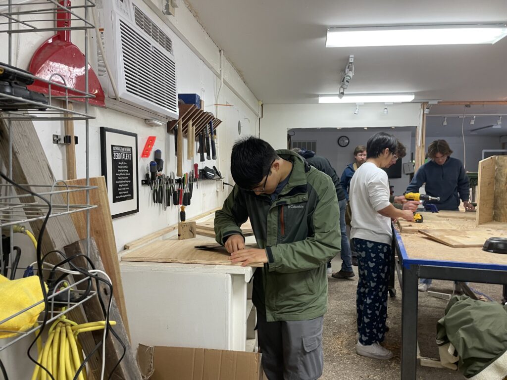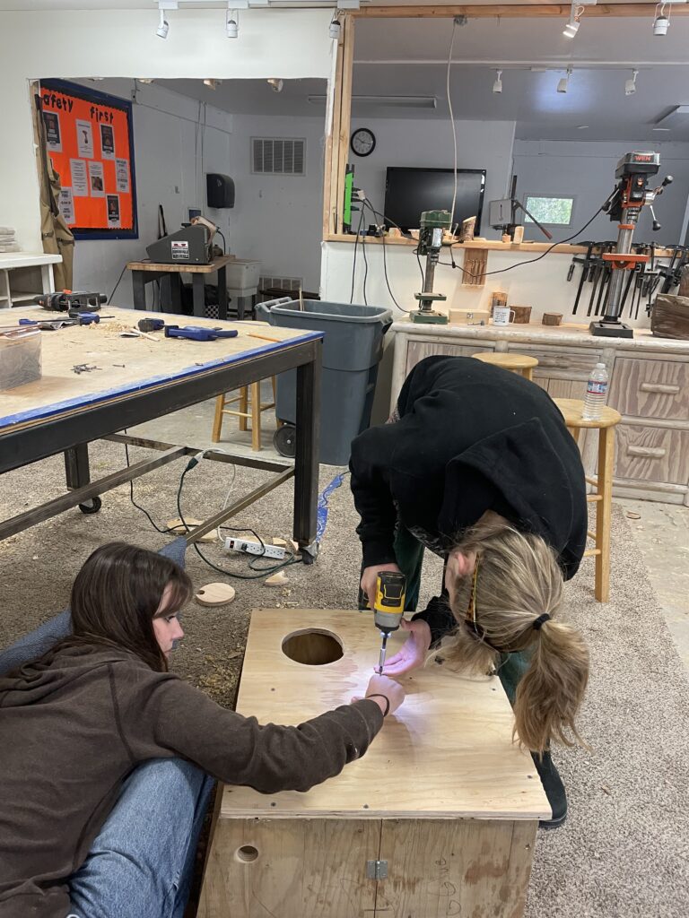 While OVS sophomores and juniors were occupied taking the PSAT/SAT, the senior class was responsible for the construction of some six predator boxes, overseen by math and woodshop teacher Doug Colborn and some other staff members.