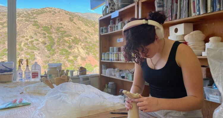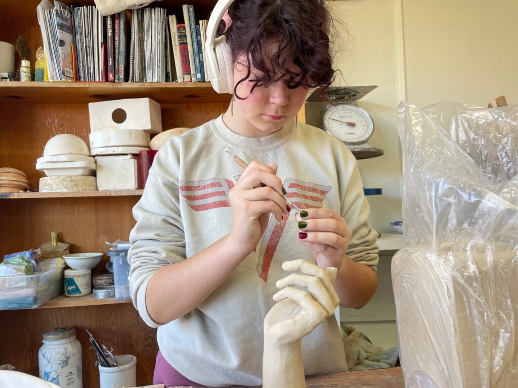 Ojai Valley School Junior Addisen Hollon’s AP 3-D Art and Design Portfolio theme is “Religion through the eyes of an atheist,” in which she creates ceramic pieces depicting how she views and questions religions. She will create ceramics to represent Islam, Jehovah’s Witnesses, Christianity, voodoo, ancestor worship, and Taoism. Then, Addisen will carve a written question into each of them.