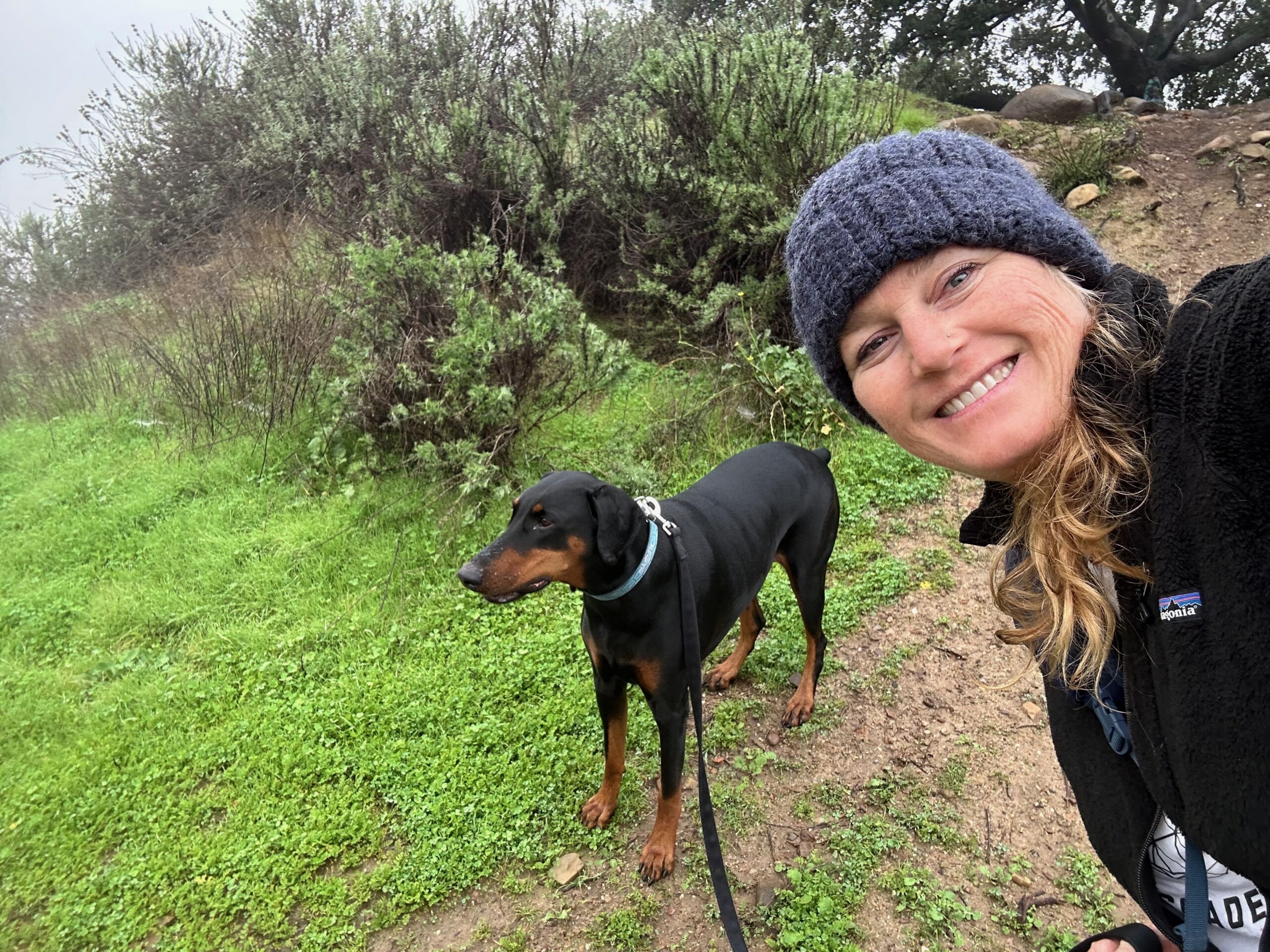 Noni has 10 different breeds but is primarily an American Staffiture Terrier. Noni grew up in the old art room at the bottom of the hill before the Thomas Fire.