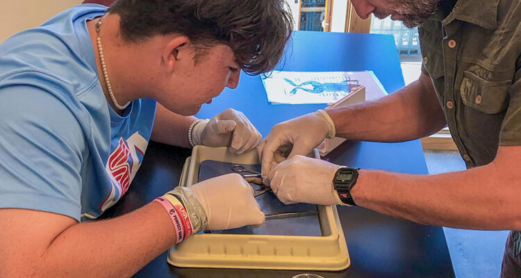 With gloves on and a scalpel in hand, freshman Leia Lenz-Ahron leaned over the table, her brow furrowed in concentration.