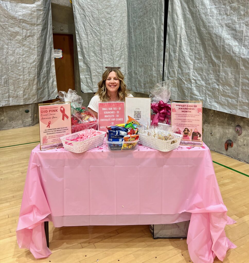 Throughout Ms. Ruby’s volleyball career – she played four years of Division 1 indoor college volleyball while earning her undergraduate degree and then another year of Division 1 beach volleyball while earning her master’s – she’s always had a breast cancer awareness game with her teams, and she wanted to bring that spirit of support and contribution to OVS.